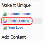 To change look and feel of the mobile site click on the link Design/Colors available under the right side menu bar section  Make It Unique.