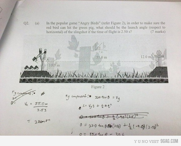 A reddit user posted an image of physics exam question paper, where students have to calculate the angle at which the bird needs to be launched for hitting the pig perfectly. Well solving this problem fetches 7 marks in the exam. Check out the exam question after the break.