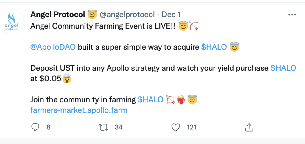 During the event, the Angel Vaults will buy $HALO at a rate of $0.05 (USD).$HALO Farming Event will continue until all 40,000,000 million $HALO are farmed.