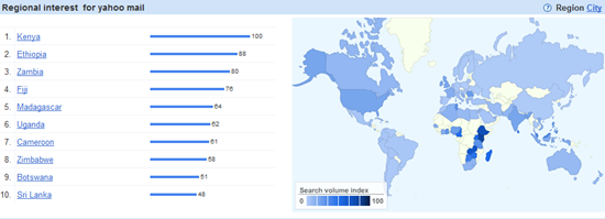 - Yahoo Mail is popular in Kenya followed by Ethiopia and Zambia