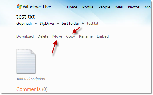 Windows Live SkyDrive: How To Move or Copy Files Between Folders