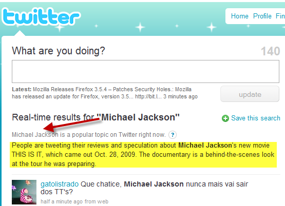 But who is keying in this information at twitter? Are there any Twitter engineers who are updating description of these trending topics regularly? No. Not at all. Twitter just tied up with whatthetrend.com and using their APIs to pull information of the trending topics.